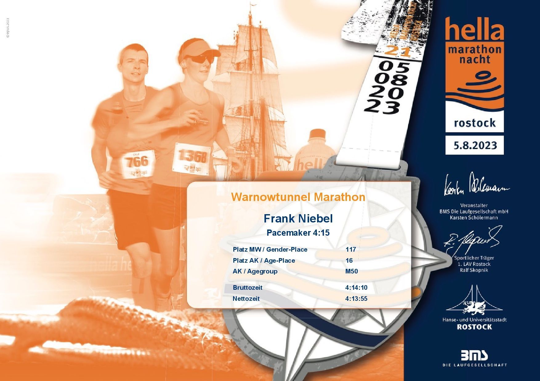 Unsere Leute sind alle glücklich, zufrieden und gesund ins Ziel gekommen und konnten die Medaille entgegennehmen. Die Nichtläufer feuerten die LTVler an und so hatten sich dann alle das leckere Essen am Abend verdient. Der ein oder andere ist noch durch die Innenstadt geschlendert, eine gemütliche und schöne Fußgängerzone. Am Sonntag zeigte sich das Wetter dann von der besten Seite, sogar mit Sonnenschein und bester Sicht. Ideal um zum Hafen zu marschieren und noch ein paar Eindrücke von Stralsund zu bekommen, bis es dann wieder in Richtung Kiel ging.